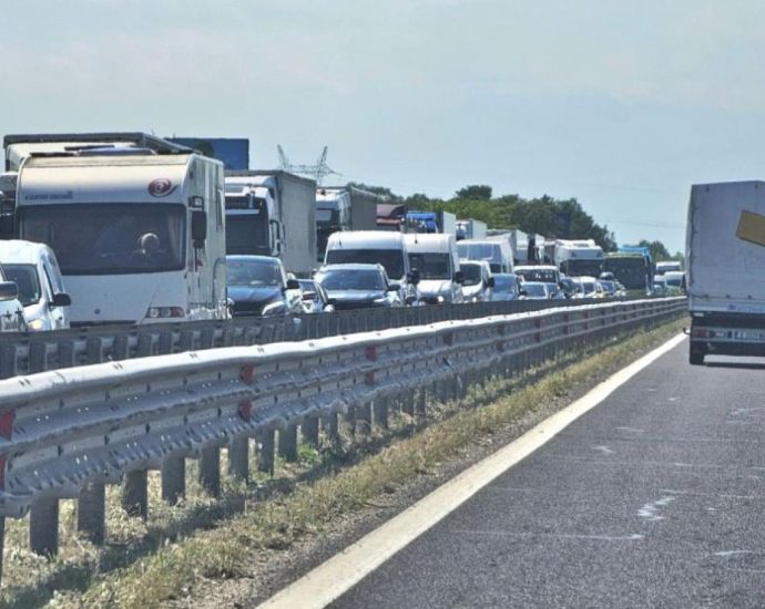 Образувала се е километрична колона от автомобили, която се движи много бавно. Причината за задръстването все още не е ясна, но най-вероятно е напливът от пътуващи за празничните дни около Великден.
